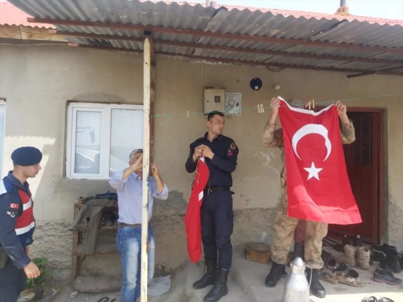 Şehadet haberinin ardından şehidin evine Türk bayrağı asıldı.