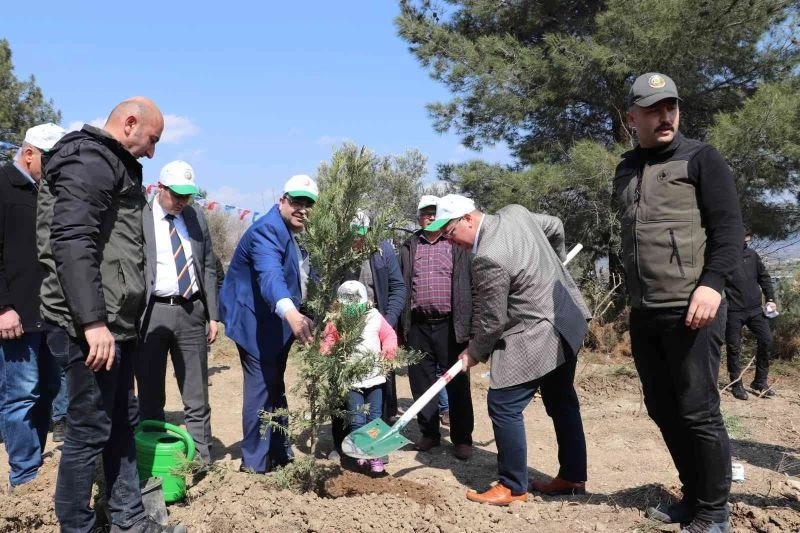 Kırkağaç’ta görev yaparken şehit olan Yaşar Cinbaş’ın anısına 550 meyve ve çam ağacından oluşturulan hatıra ormanı, vatandaşlar, öğrenciler ve protokolün katılımıyla açıldıktan sonra dikilen fidanlar sulandı.
