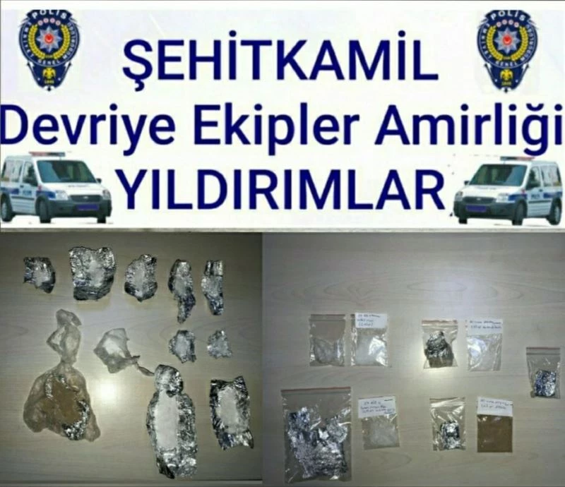 Gaziantep’in Şehitkamil ilçesinde yapılan drone destekli şok asayiş uygulamasında bir miktar uyuşturucu madde ile 1 adet tabanca ve 5 adet fişek ele geçirildi.