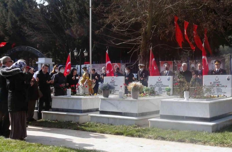 Şehitlikte düzenlenen törende şehitler anıtına çelenk sunumunun ardından, saygı duruşunda bulunuldu. İstiklal Marşı’nın okunmasının ardından şehitler için saygı atışı yapıldı. Günün anlam ve önemine yönelik konuşmaların ardından şehitlikler ziyaret edildi.