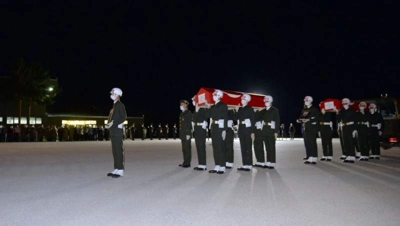 Şehitlerin Türk bayrağına sarılı naaşları görev arkadaşlarının omuzlarında tören alanına getirildi. Burada şehitlerin öz geçmişi okundu ve dualar edildi. Törenin ardından şehit Uzman Çavuş İdris Şahin’in naaşı memleketi Mersin’e, şehit Ceyhun Arslantürk’ün naaşı ise memleketi Ordu’ya uğurlandı.