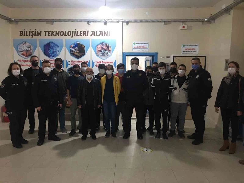 İlçe Emniyet Müdürü Bünyamin Temür ve beraberinde emniyet personeller ile birlikte Mesleki ve Teknik Anadolu Lisesi’ni ziyaret ederek Okul Müdürü Tarık Dursun Dinçer ile birlikte şehit asker, polis ve öğretmenlerin adının verildiği Bilişim Teknolojileri Bölümünde bulunan sınıf ve laboratuvarı gezdi. Emniyet Müdürü Temur, okul yönetimine duyarlı davranışlarından dolayı teşekkür etti.