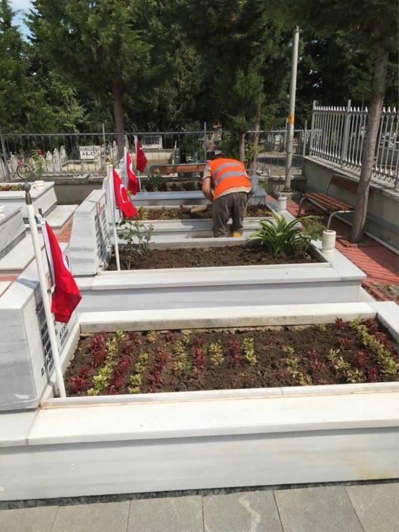 Samsun Büyükşehir Belediyesi Mezarlıklar Şube Müdürlüğü ekipleri tarafından 15 Temmuz Demokrasi ve Milli Birlik Günü etkinlikleri kapsamında şehit mezarlarında bakım yapıldı.