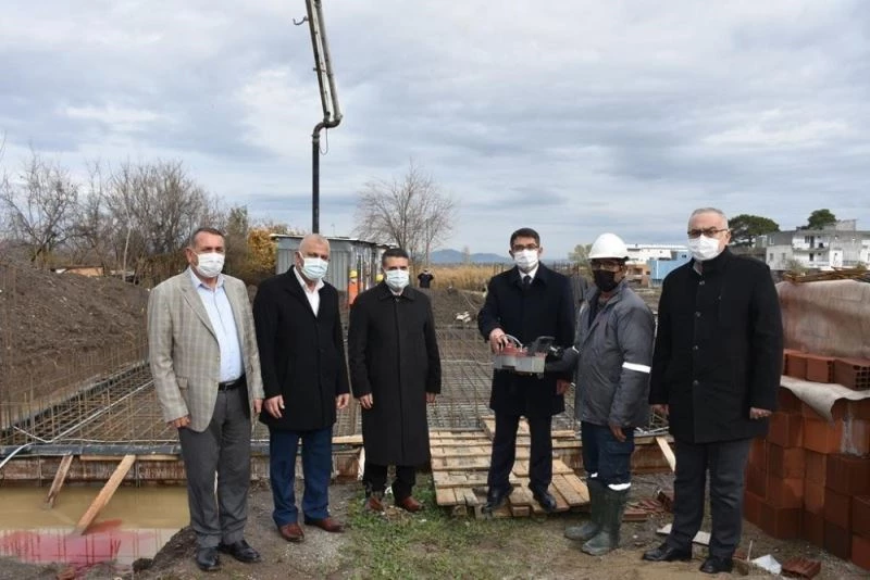 Başkan Çelik’in açıklamalarının ardından kurban kesilerek, dua edildi. Daha sonra butona basılarak dev tesisin ilk harcı temele atıldı.