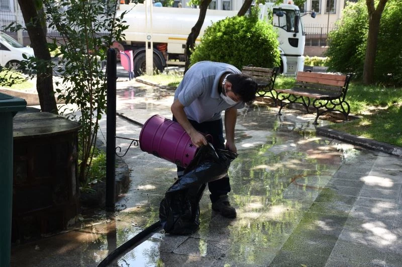Şehzadeler Belediyesi Temizlik İşleri Müdürlüğüne bağlı ekipler, bayram namazı öncesinde Şehzadeler’deki camilerde hummalı bir temizlik çalışması başlattı. Pandemi nedeni ile sosyal mesafe kurallarına uygun bir şekilde kılınacak namaz öncesinde belediye ekipleri cami bahçelerinde detaylı bir yıkama ve temizlik çalışması başlattı.