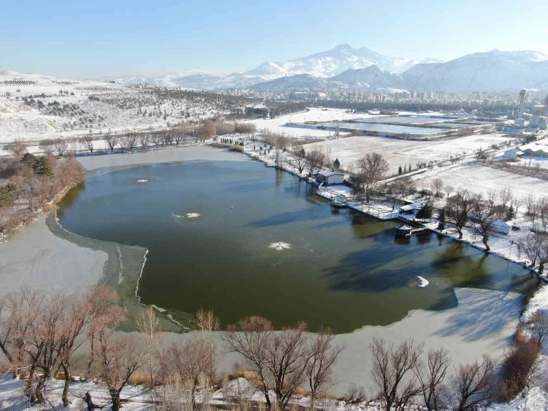 İlçeye bağlı Şeker Mahallesi’nde bulunan Şeker Gölü, karın yağmasıyla beraber eşsiz bir güzelliğe büründü. Erciyes Dağı ile birlikte havadan çekilen gölde, kartpostallık görüntüler ortaya çıktı. Gölün bir kısmı buz tutarken, ördeklerde kalan kısımlarda suyun tadını çıkardı.