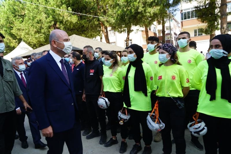 Öte yandan 30 Ağustos Zafer Bayramı’nın kutlandığı tören alanına gelen komando birliği, ilçe merkezinden geçtiği sırada marşlar söyledi. Ellerinde Türk Bayrağı ve Atatürk Bayrağı da bulunan komandolar, hep bir ağızdan seslendirdiği marşlarla yeri göğü inletti. Komandoların söylediği marşlar, tören alanına gelen davetliler tarafından büyük alkış topladı. Törende Jandarma Asayiş Komutanlığı (JAK), Polis Sualtı Arama Kurtarma, Polis Arama Kurtarma (PAK), AFAD Başkanlığı, ANDA, Türk Kızılayı, UMKE, 112 Acil Sağlık ekipleri gibi kurumlarda yer aldı. İçişleri Bakanı Süleyman Soylu, katılımcıların bayramını kutlamasının ardından tören sona erdi.