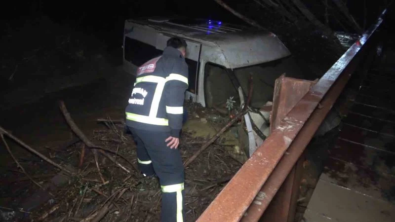 Sel suları minibüsü dereye yuvarladı: Suya kapılan 6 işçi ölümden döndü