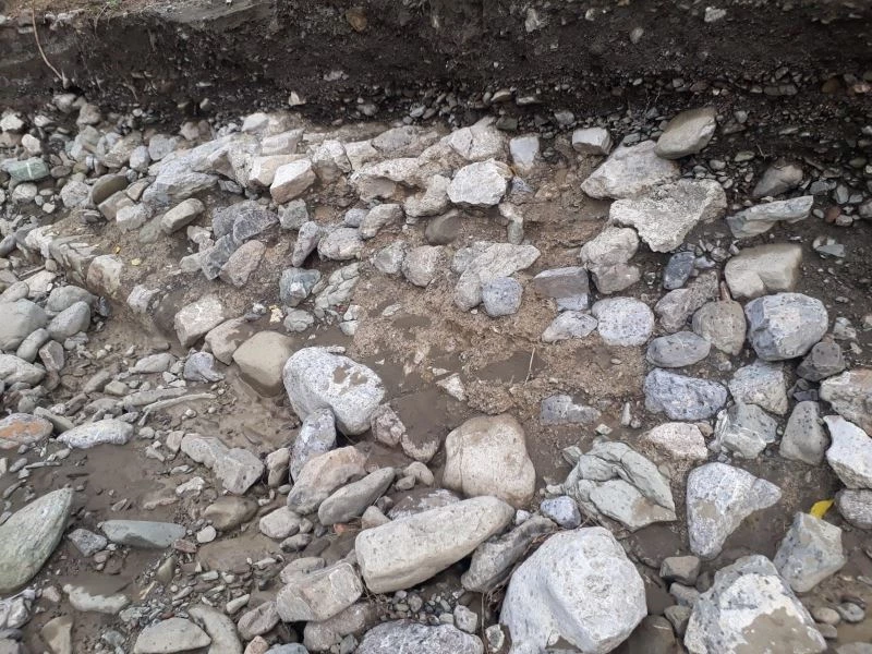Sel sularının ortaya çıkardığı duvar kalıntısı tarihi eser heyecanı oluşturdu