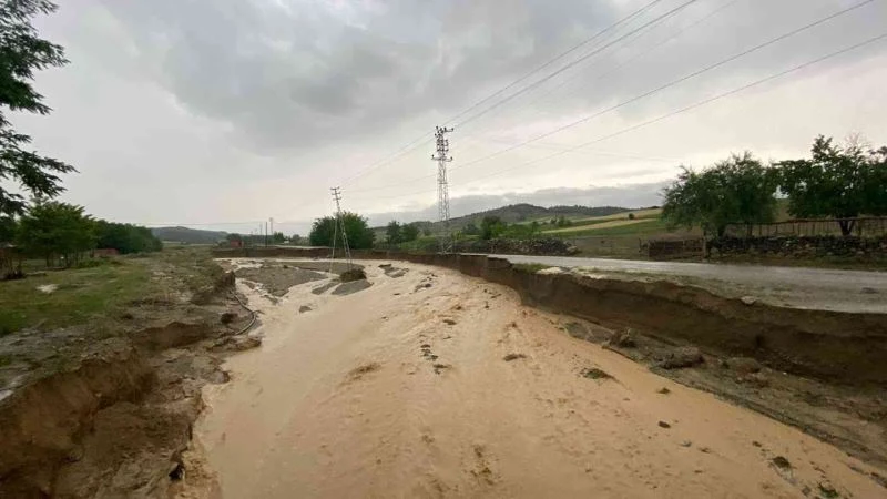 Edinilen bilgiye göre, Kastamonu’da öğle saatlerinde etkili olan şiddetli sağanak bazı ilçelerde hayatı olumsuz etkiledi. Taşköprü ilçesine bağlı Karapürçek köyü Yeniler Mahallesi mevkiinden geçen grup yolu ile Hamzaoğlu köyünden geçen grup yolu da şiddetli yağışın ardından zarar gördü. Yeniler Mahallesi’nde bulanan elektrik direğinde de yıldırım düşmesi neticesinde hasar meydana geldi. İki farklı yolun çökmesi sebebiyle 8 köye ulaşımın sağlanamadığı belirtildi.