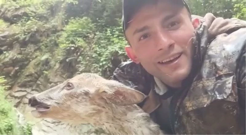 Olay Rize’nin Hemşin ilçesinde meydana geldi. Hemşin ilçesinde bulunan bir şelalede mahsur kalan karacayı gören Nazım Fırat adlı vatandaş, mahsur kalan karacayı kendi çabalarıyla kurtardı. Şelalede mahsur kalan karacayı kurtaran vatandaş, karacayla anı fotoğrafı çekildikten sonra tekrardan doğaya saldı.