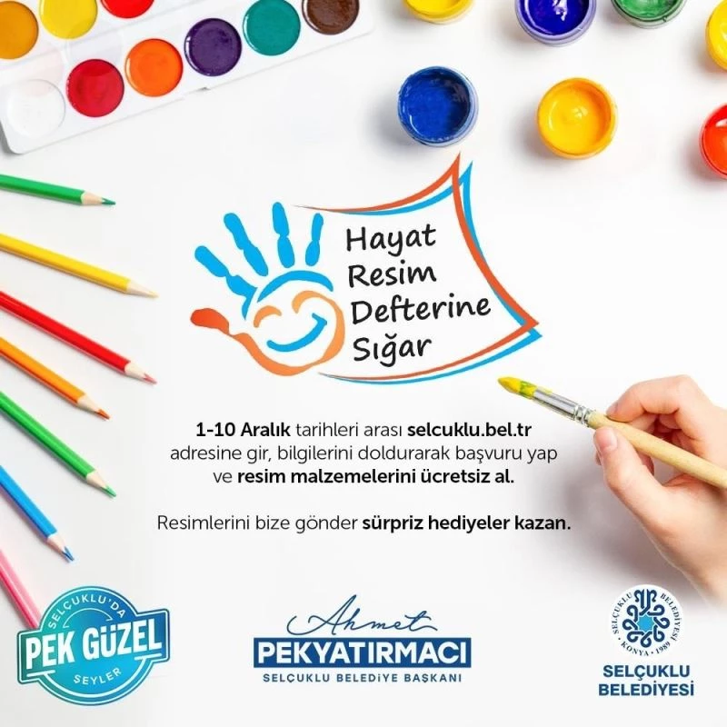 Selçuklu Belediyesi korona virüs döneminde evde kalan çocukların ekran başında geçirdiği zamanı azaltmak, onların resim yeteneklerini geliştirmelerine yardımcı olarak hayal güçlerinin zenginleştirmesi amacıyla anlamlı bir yarışma düzenliyor. Başvuruları internet üzerinden online olarak gerçekleştirilen "Hayat Resim Defterine Sığar" konulu resim yarışmasına son başvuru tarihi 10 Aralık Perşembe.