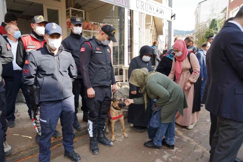 Sel felaketinin yaşandığı Kastamonu’nun Bozkurt ilçesinde selde çok sevdiği köpeği Rüzgar’ı kaybeden kadın, jandarmanın arama kurtarma köpeğini görünce gözyaşlarını tutamadı. Hıçkıra hıçkıra ağlayan kadın, jandarmanın arama köpeğinin selde kaybettiği köpeği Rüzgar’a çok benzediğini ve kendisine onu hatırlattığını söyledi.