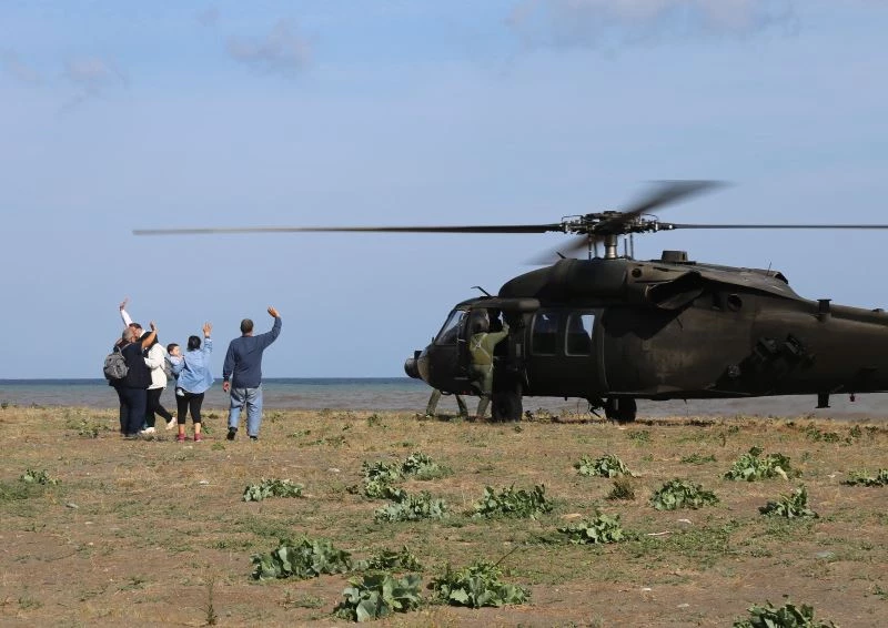 Helikopterden inen vatandaşlar büyük sevinç yaşadı. Kendilerini kurtaran ekiplere el sallayarak teşekkür eden vatandaşlar, daha sonra jandarma ekipleri tarafından araçlarla alındı. Helikopterle kurtarılan bir kadının kafesteki kuşu da yine ekipler tarafından kurtarıldı. Kurtarılan selzede kucağındaki kafesle helikopterden indi.