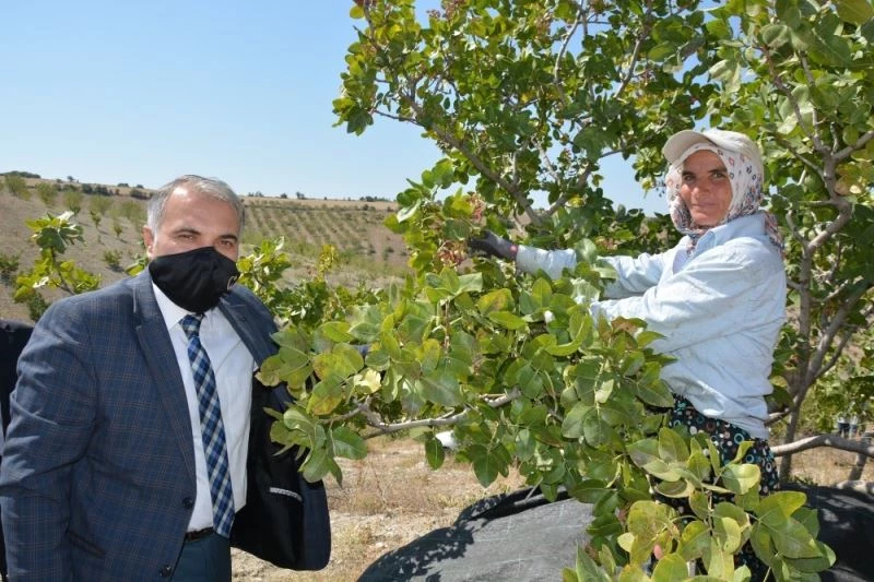 Manisa’nın Selendi ilçesinde yapılan Antep fıstığı hasadı aralıksız devam ederken, İlçe Kaymakam Vekili Kemal Duru da fıstık toplama çalışmalarına katıldı.