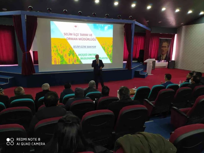 Selim’de, "Selim Güne Bakıyor " projesi kapsamında "Ayçiçeği Yetiştirciliği" üretici bilgilendirme toplantısı düzenlendi.