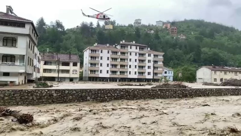 Kastamonu’nun Bozkurt ilçesinde şiddetli yağış neticesinde ilçenin sular altında kalmasıyla evlerde mahsur kalan vatandaşlar helikopterlerle tahliye edildi.