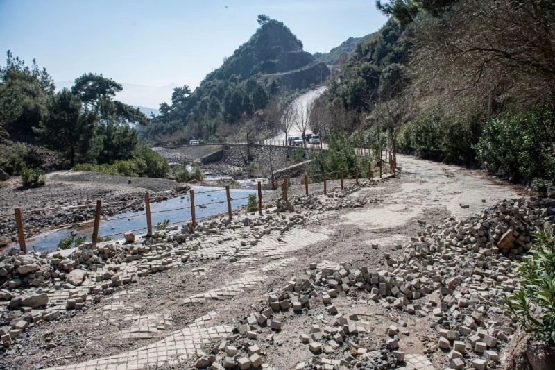 İzmir Büyükşehir Belediyesi, selden etkilenen Bornova’daki Homeros Vadisi Rekreasyon Alanında tadilat çalışmalarına başlıyor. Parke taşlarının tamamen söküldüğü ve ağaçların devrildiği vadideki çalışmaların maliyetinin 2,2 milyon lirayı bulacağı tahmin ediliyor.