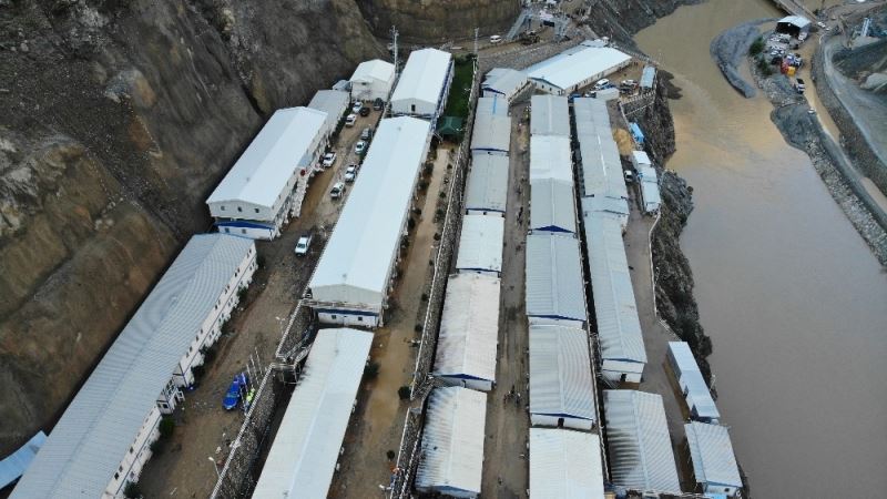 Tamamladığında dünyanın en yüksek 3. Barajı olacak Yusufeli Barajı’nın şantiyesini sel vurdu. Çok sayıda araç kullanılmaz hale geldiği şantiye havadan görüntülendi.