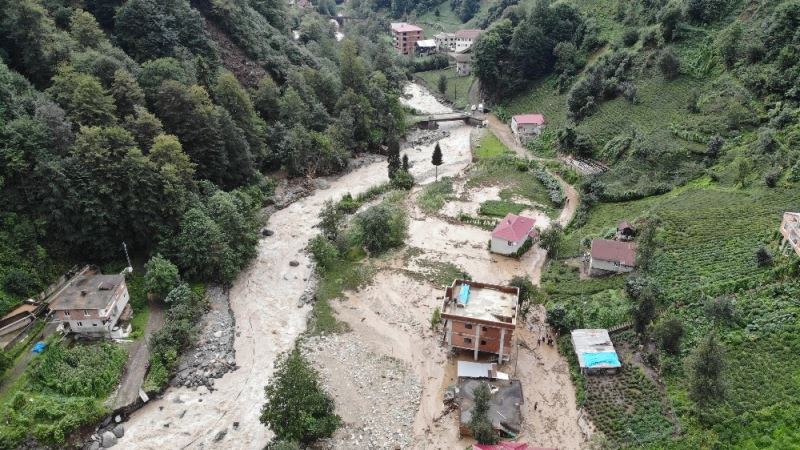 Rize’de selden en fazla zarar gören köylerden biri olan Kaçkar Köyü havadan görüntülendi.