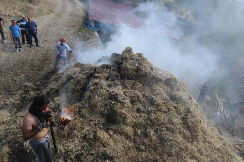 Amasya’nın Taşova ilçesinde semaverden çıkan kıvılcım 1600 balya samanı kül etti.