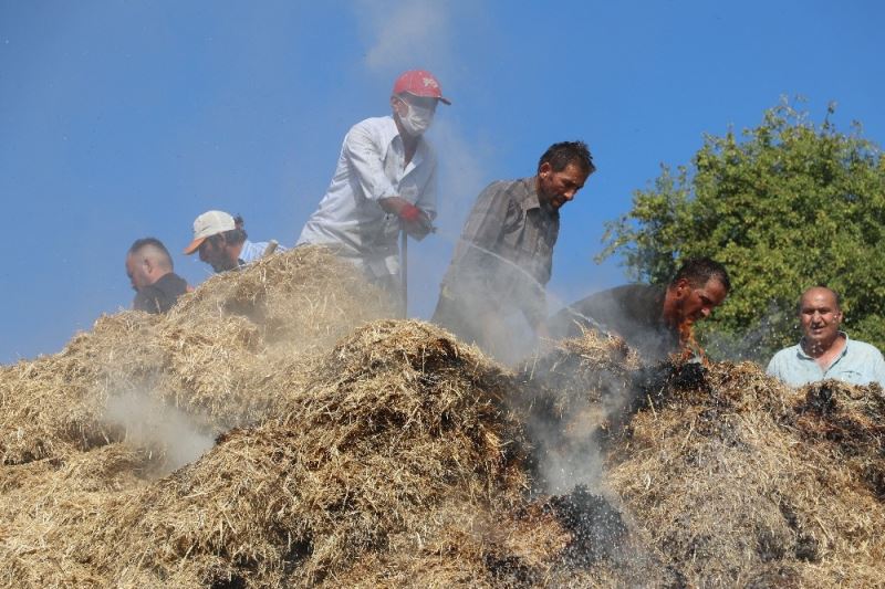 Semaverden çıkan kıvılcım 1600 balya samanı kül etti