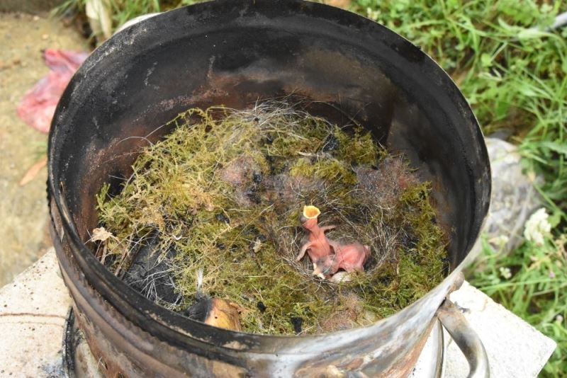 Sinop’ta yaşayan Osman Aksu yaklaşık 20 gün önce semaverine yuva yapan kuşların bakımını üstlendi.