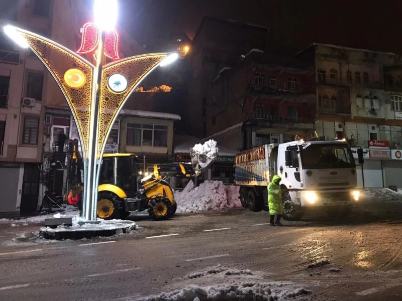 Çalışmaları yerinde inceleyen Belediye Başkanı Tahir Saklı, “Dört gündür ilçemizde yoğun kar yağışı var. Şu an tamamen yollar kapalı bizde yağışın devam etmesinden dolayı ilçemizdeki karları temizlemeye başladık. Tabi gündüz araçlar ilçe merkezinde olduğu için çalışmalara gece başladık. Gece boyunca çalışmalarımıza devam edeceğiz. Devletimizin bize sağladığı bütün imkanları kullanacağız” dedi.