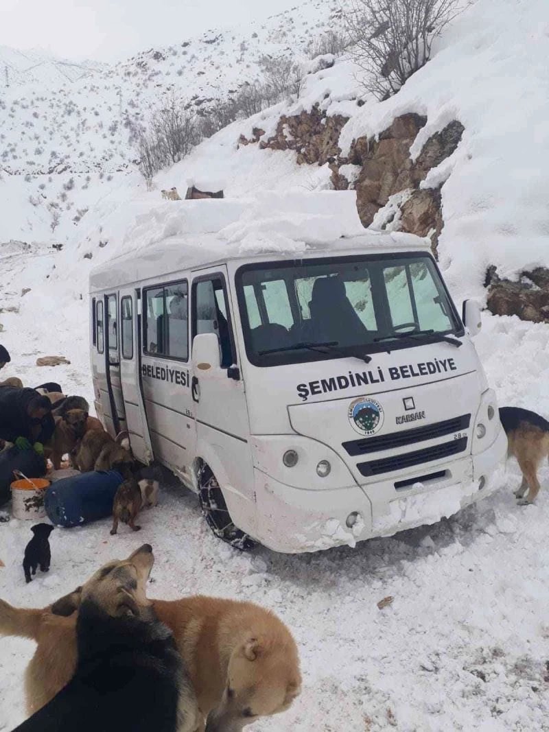 Hakkari’nin Şemdinli Belediyesi ekipleri, olumsuz hava şartları nedeniyle sokak hayvanlarını unutmayarak yemleme çalışması yaptı.