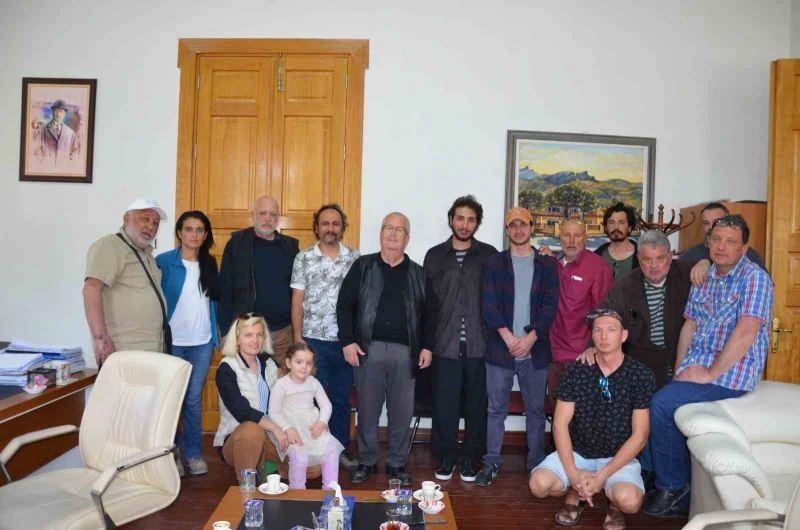 Uluslararası Kuzey Ege Gömeç Heykel Sempozyumuna katılan 12 sanatçı, Gömeç Belediye Başkanı Mehmet İrem Himam’ı makamında ziyaret etti.