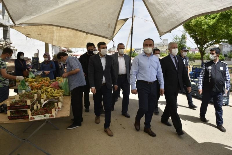 Vali Recep Soytürk, Kilis Belediye Başkan Yardımcısı Mustafa Tohumcu, İl Emniyet Müdürü Mahmut Karabulut ve yetkililer ile 3 ayrı yerde kurulan semt pazarlarında incelemelerde bulundular.