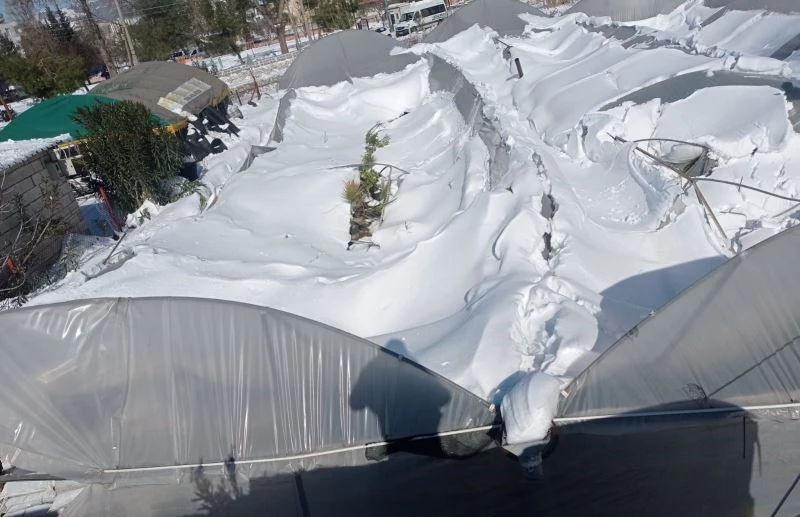 Adıyaman’da yoğun kar yağışı sonrasında sera yıkılınca binlerce fidan zarar gördü.