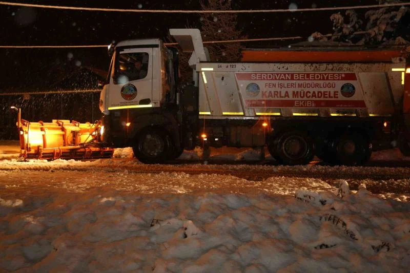 Serdivan Belediyesi’nden hafta sonunda kar mesaisi