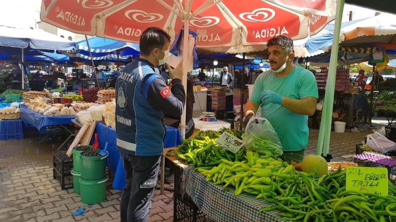 Serdivan Belediyesi korona virüsle mücadele kapsamında normalleşme uygulamalarını hayata geçirirken, tedbirler kapsamında denetimlerini de aralıksız sürdürüyor. Yeni normal döneminin ilk haftasında Serdivan Belediyesi Zabıta Müdürlüğü’ne bağlı ekipler kurulan semt pazarlarını denetledi. Ekipler, sosyal mesafe konusunda vatandaşlara ve pazar esnafına uyarılarda bulunurken, Pazar yerlerindeki kontrol noktalarında maskesiz girişlere izin verilmedi. Zabıta Ekipleri, pazarcı esnafının yanı sıra alışverişe gelen vatandaşlara ücretsiz maske dağıttı.