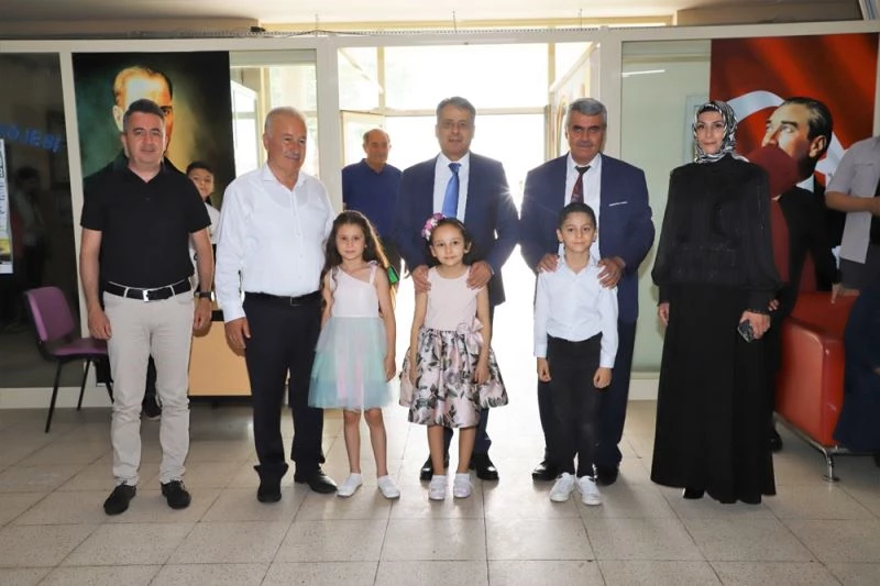 Celal Sönmez İlkokulunda düzenlenen karne dağıtım törenine Kaymakam Ahmet Hikmet Şahin ve Belediye Başkanı Halil Şahin katıldı.