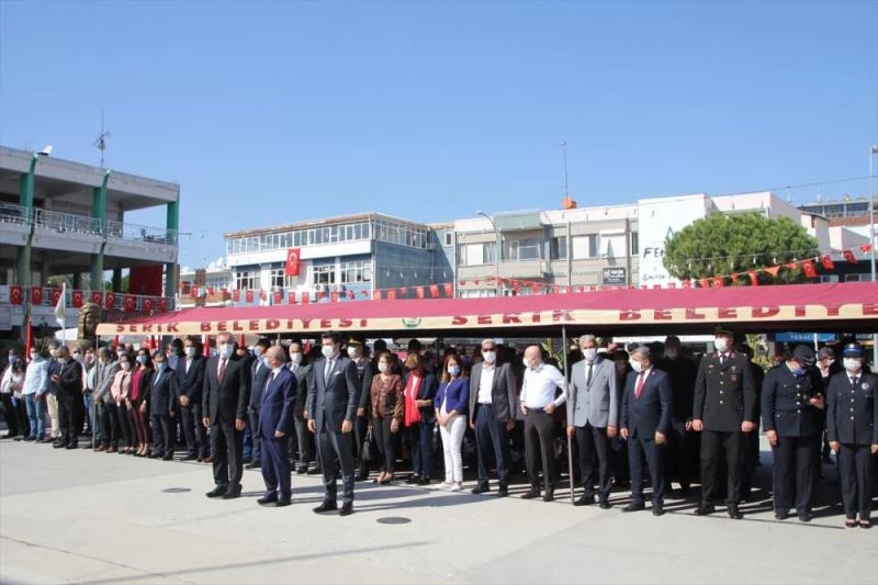 ANTALYA - Serik ilçesinde 29 Ekim Cumhuriyet Bayramı kutlamaları kapsamında düzenlenen törende, Atatürk Anıtı'na çelenk sunuldu.