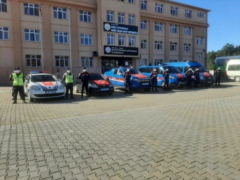 Serik İlçe Jandarma Komutanlığı, Gebiz Jandarma Karakol Komutanlığı ve İl Jandarma Komutanlığı ekipleri, Gebiz Mahallesi Şehit Barış Akkabak Ortaokulu ve İmam Hatip Ortaokulu'ndan 70 öğrenci ve 5 öğretmen ile kent merkezindeki sinemaya geldi.