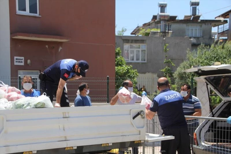 Merkez Mahallesi'ndeki 15 Sokak'ta karantinanın altıncı günündeki vatandaşlara Serik Belediyesince sebze ve meyve, hayırseverler tarafından ise 750 ekmek gönderdi.