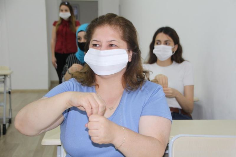 Antalya Büyüksehir Belediyesi Atatürk Sanat ve Egitim Merkezinde (ATASEM)'nde isaret dili egitimi alan kursiyerler babalarina Babalar Günü sürprizi yapti.