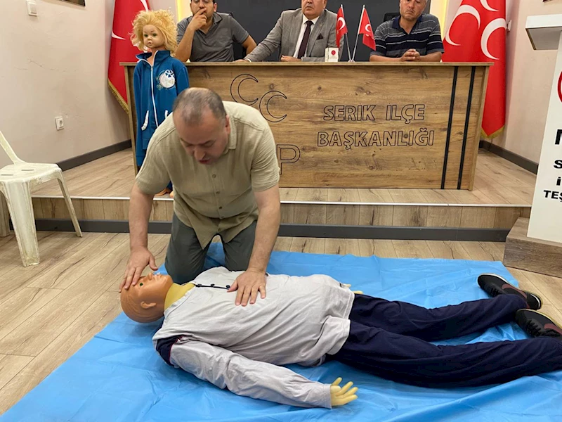 ANTALYA - MHP Serik Başkanlığı tarafından düzenlenen ilk yardım seminerinde katılımcılara Heimlich manevrası, kalp masajı ve suni teneffüs eğitimi verildi.