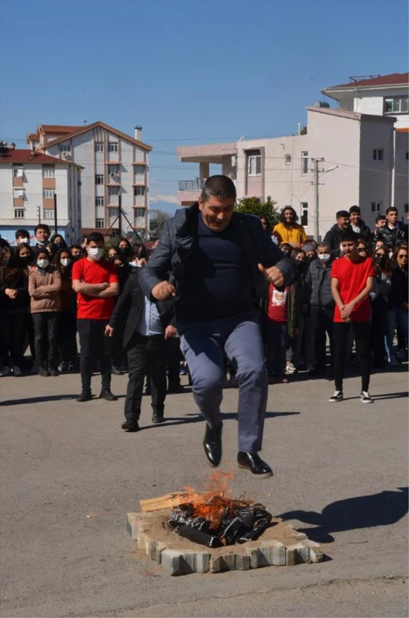 Konuşmaların ardından Nevruz ateşi yakıldı. Katılımcılar yakılan ateşin üzerinden atladı. Milli Eğitim Müdürü Ekiz ve okul müdürleri örs üzerinde demir dövdü. Ardından Nevruz oyunları oynandı.