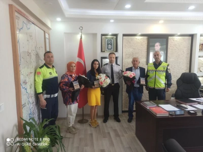 Etkinlikte, İlçe Jandarma Komutanı Üsteğmen Ayhan Aktürk, hiç ceza almayan iki kadın ve bir erkek sürücüye plaket ile çiçek verdi.