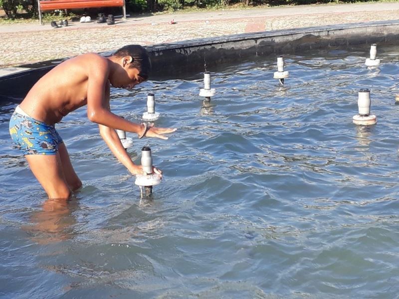 Hava sıcaklıklarının attığı Kocaeli’de çocuklar, serinlemek için tehlikeli bir yola başvurdu. İzmit Karabaş Mahallesi’nde bulunan Uğur Mumcu Parkı’na gelen çocuklar, kıyafetlerini çıkararak parkın içerisinde bulunan süs havuzuna girdi. 220 volt elektrik akımının geçtiği havuzda çocuklar, içinde bulundukları tehlikeye aldırış etmeden suyla eğlenmeye ve serinlemeye devam etti. Süs havuzunun fıskiyeleriyle de oynayan çocuklar elektrik kaçağı olabileceği riskini umursamadı. Süs havuzunun kenarına çıkan çocuklar, havuzun içine balıklama atladı.