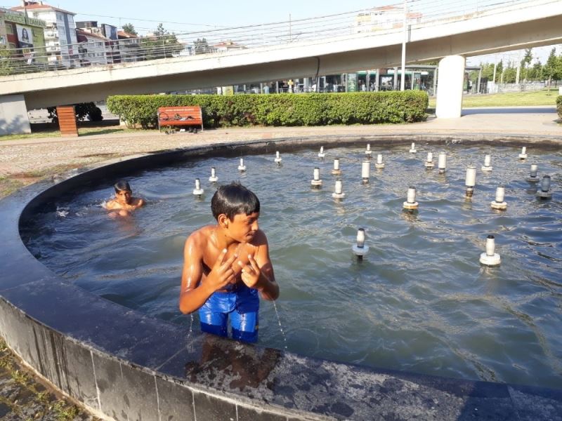 Kocaeli’nin İzmit ilçesinde çocuklar, sıcak havada bunalınca serinlemek için tehlikeye aldırmadan elektrik akımı bulunan süs havuzunun içine yüzdüler.