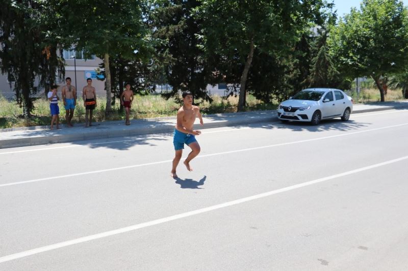 Erkan Avuç isimli çocuk, “Kanımız sıcak yanıyoruz o yüzden burada yüzüyoruz. Tehlikeli ama havuzlar kapalı olduğu için buradayız” dedi.