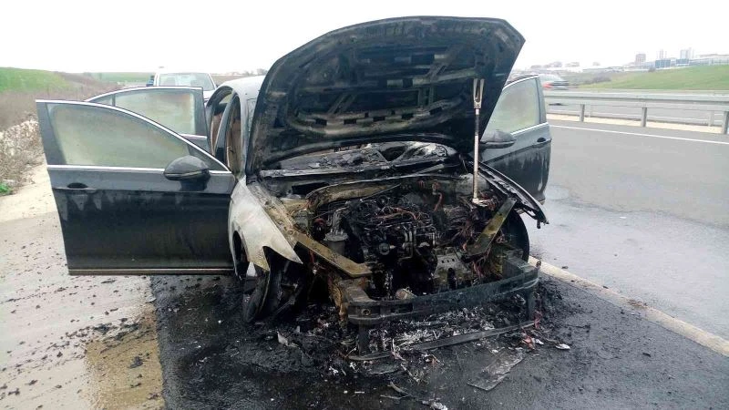 Tekirdağ’da servisten çıkan otomobilin test sürüşü esnasında motor kısmı alev aldı.