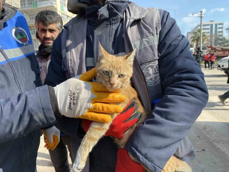 Depremden en çok etkilenen iller arasında yer alan Adıyaman’da arama ve kurtarma çalışmaları, 5’inci günde hız kesmeden devam ediyor. Arama çalışmaları çerçevesinde hasar meydana gelen bir binada ses tespit eden Mardin İtfaiyesi arama ve kurtarma ekipleri, Atatürk Bulvarı’nda bulunan binanın kapısını kırarak içeri girdi. Ekipler, binada sıkışarak mahsur kaldığını gördükleri kediyi kısa sürede kurtararak dışarı çıkarttı. Veteriner ekiplerine teslim edilen kedinin sağlık durumunun iyi olduğu belirtildi.