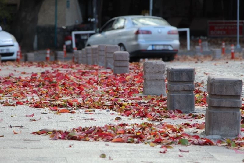 Denizli’de sonbaharın geride kalmasıyla beraber sararan ve dökülen yapraklar caddelerde kartpostallık görüntü oluşturdu.