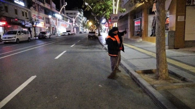 Sessizliğe bürünen cadde ve sokaklar temizlik görevlilerine kaldı