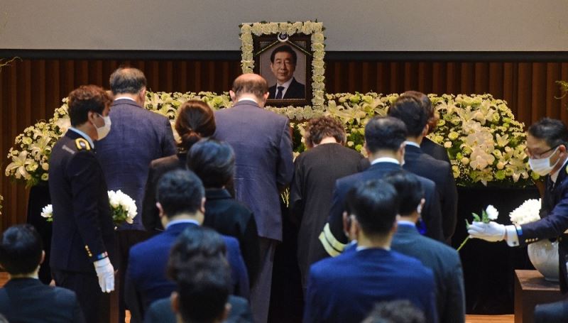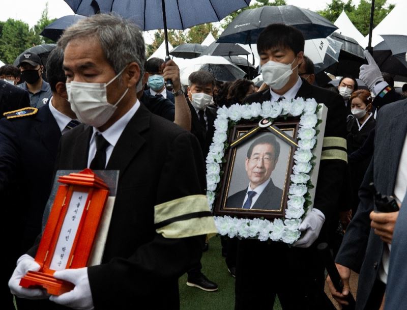 Güney Kore’de geçtiğimiz 10 Temmuz’da başkent Seul’ün Belediye Başkanı Park Won-soon, kızının kayıp başvurusu yapması üzerine polis tarafından başlatılan çalışma sonucu ölü bulunmuştu. Belediye Başkanı Park Won-soon için bugün Seul Kent Meclisi’nde cenaze töreni düzenlendi. Törene Park’ın ailesi, belediye çalışanları ve siyasetçiler katıldı. Çevrimiçi olarak canlı olarak yayınlanan cenaze töreni, yeni tip korona virüs (Covid-19) salgını tehlikesi nedeniyle yaklaşık 100 kişi ile sınırlandırıldı. Törende konuşan edebiyat eleştirmeni Paik Nak-chung, "Şimdi yas tutma zamanı" dedi. Park Won-Soon yakıldıktan sonra külleri, memleketi Güney Gyeongsang bölgesinde toprağa verilecek.